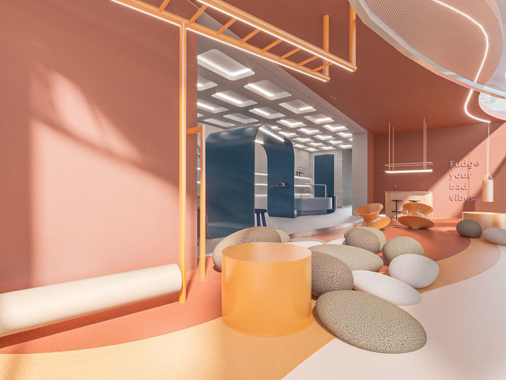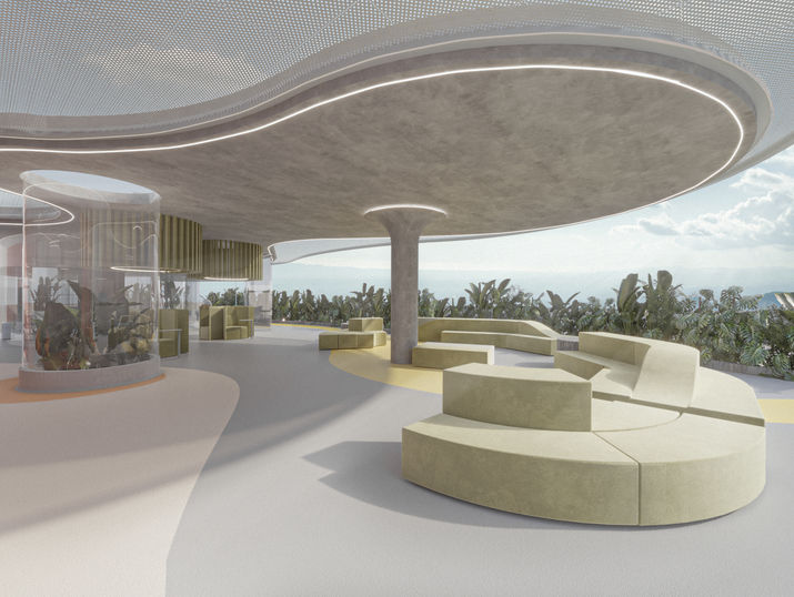 Interiorismo y visualización para oficinas del equipo de diseño de Corona, ubicadas en Sabaneta, Antioquia.